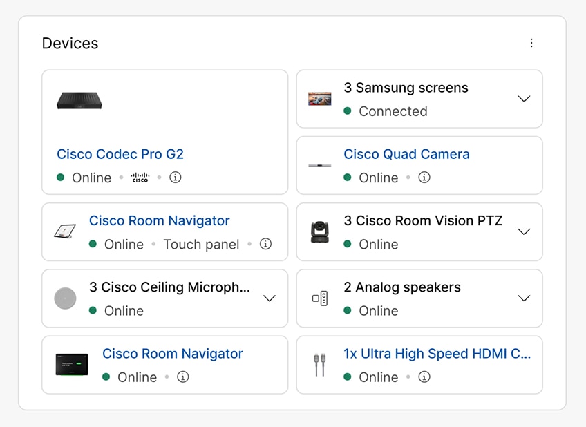 Cisco Rooms (full-featured Webex and Zoom, interop with Microsoft Teams and Google); Microsoft Teams Rooms; BYOD (via USB-C). Platform support |