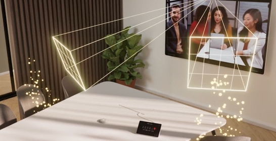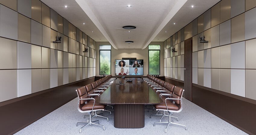A perfect combination of single and multi-camera technology with AI-enhanced image processing lets you enable multi-participant framing, prioritize the active speaker, dynamically track the presenter, or feature a wide-angle view of everyone around the table.