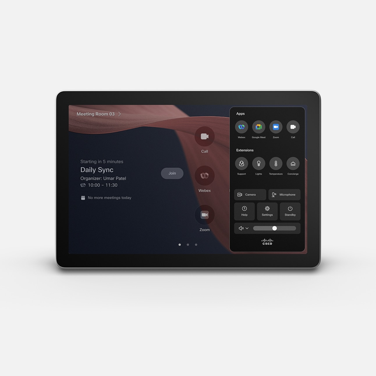 Experience exceptional video conferencing, intuitive controls, and intelligent features with RoomOS on Cisco devices.