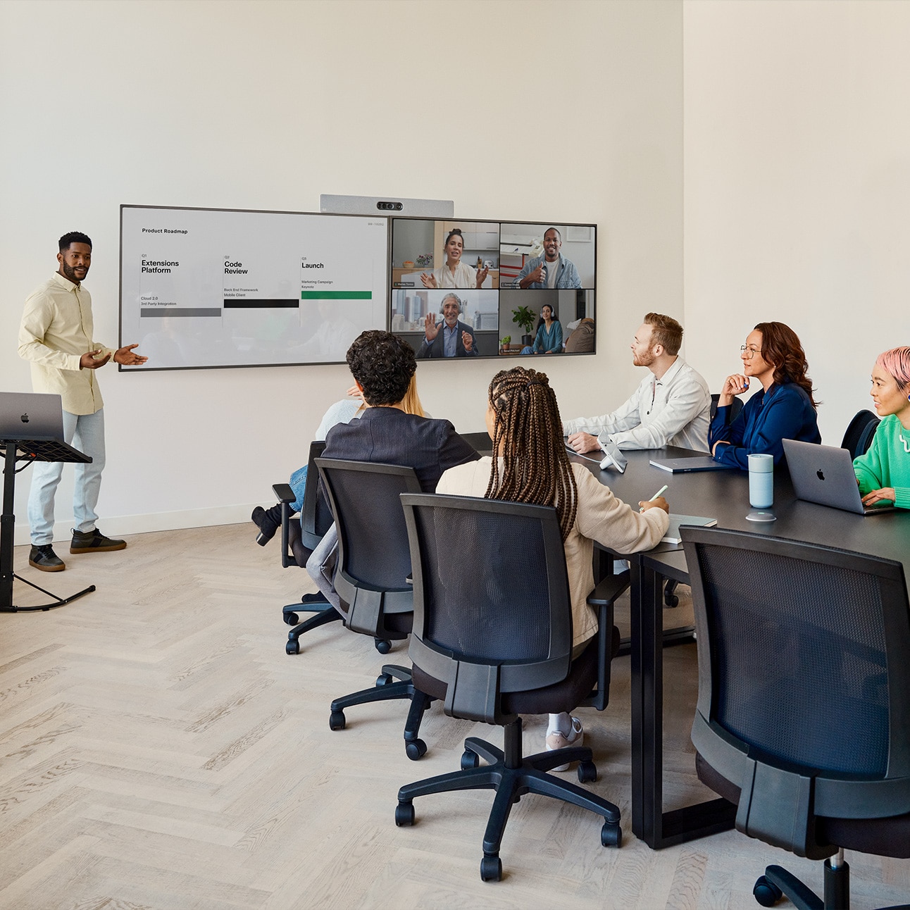 Built-in intelligent views and noise removal ensure everyone feels included in the meeting no matter where they’re working.
